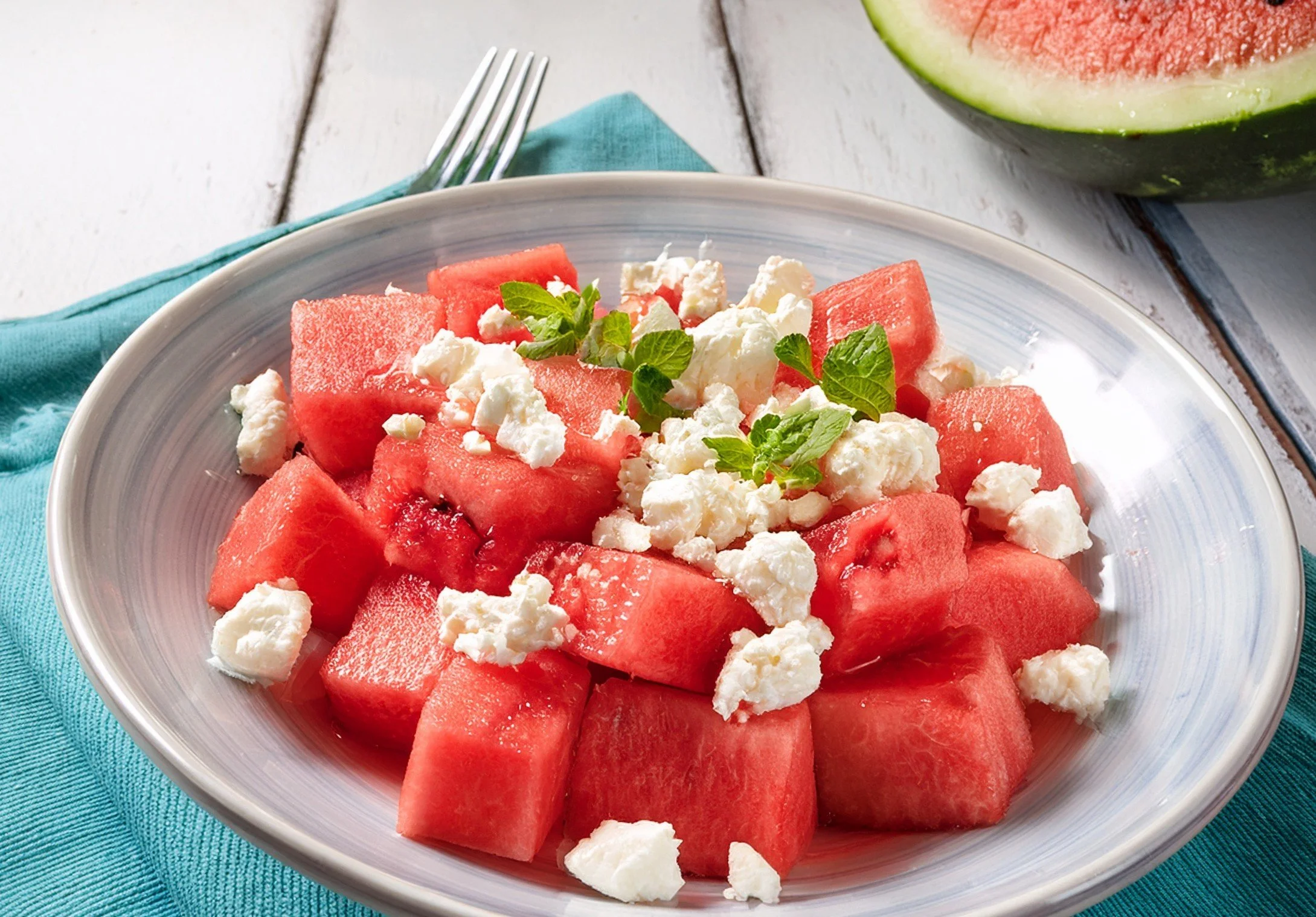Goat Cheese & Watermelon – The tangy richness of La Bonne Vie Goat Cheese balances the sweetness of watermelon.