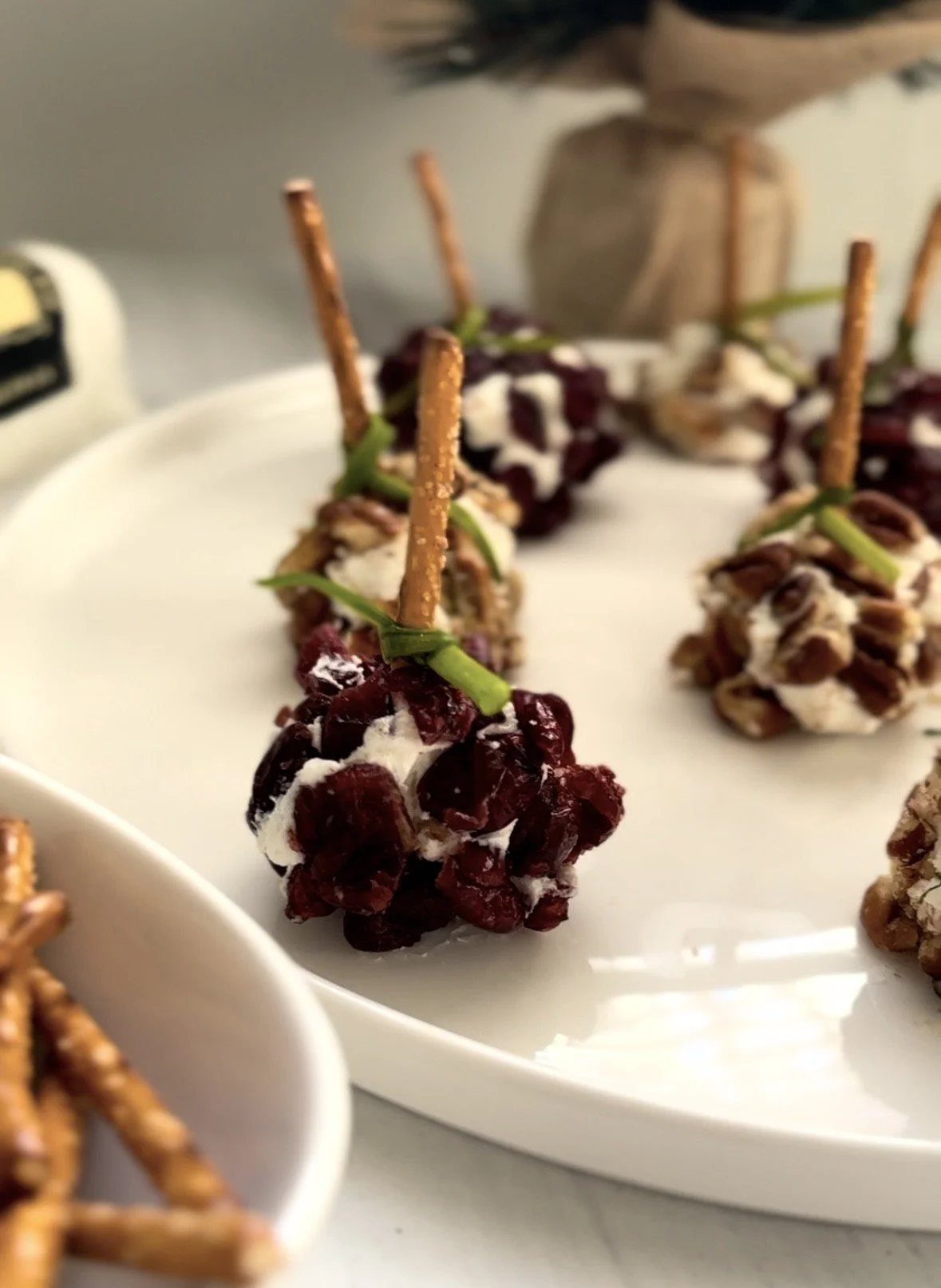 These festive mini goat cheese balls are the easiest holiday bites to bring cheer to your table